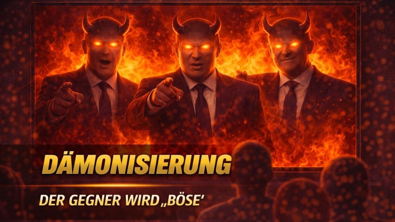 Dieses Video erklärt, wie Personen, Gruppen oder Positionen gezielt dämonisiert werden, um sie aus dem legitimen Diskurs auszuschließen. Durch sprachliche Zuspitzung, emotionale Bilder und moralische Etikettierung wird ein Schwarz-Weiß-Bild erzeugt: gut gegen böse, richtig gegen falsch, akzeptabel gegen verwerflich.