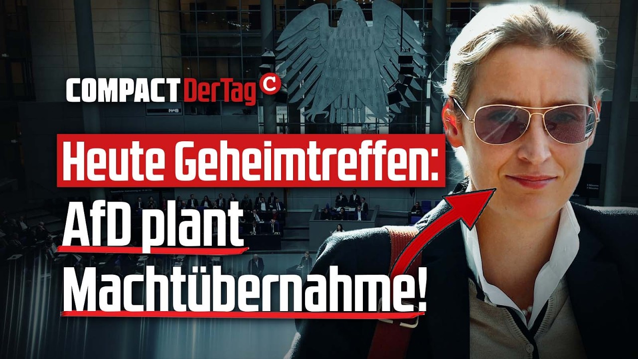 Der Stuhl von Kanzler Merz wackelt und er hat (zurecht!) Angst – denn nun wird es ernst! Heute und morgen trifft sich die AfD-Spitze zu einer geheimen Konferenz im Bundestag, um die Machtübernahme vorzubereiten. COMPACT liegt die Tagesordnung vor und wir verraten Ihnen alle Einzelheiten in diesem Brennpunkt des Tages. Im Studio begrüßen Sie Armin-Paul Hampel und Paul Klemm.